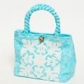【 Southern Forest 】キューブポーチ ハワイアンキルトバッグ〔ブルー オンホワイト〕ホヌ