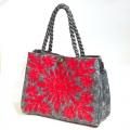 【 Southern Forest 】 A4トートバッグ ハワイアンキルトバッグ〔グレー オンピンク〕ハイビスカス
