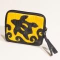 【 Southern Forest 】フラットポーチ ハワイアンキルトバッグ〔ブラック オンイエロー〕ティキ