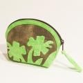 【 Southern Forest 】コスメポーチ ハワイアンキルトバッグ〔ライム オンブラウン〕ハイビスカス