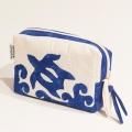 【 Southern Forest 】キューブポーチ ハワイアンキルトバッグ〔マリンブルー オンホワイト〕ホヌ