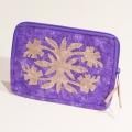 【 Southern Forest 】フラットポーチ ハワイアンキルトバッグ〔ベージュ オンパープル〕ハイビスカス