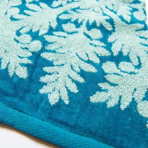 柄の部分にはふわふわの無撚糸パイル、背景にはさらっとした肌触りの撚糸パイルを使用して立体的なキルトデザインを表現しております。