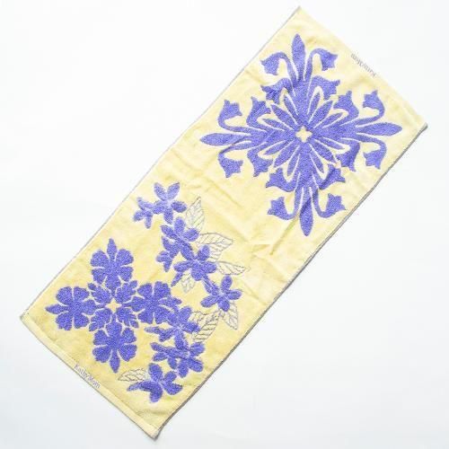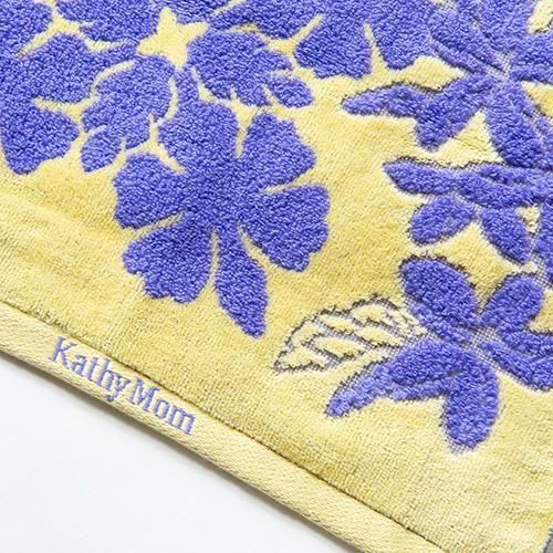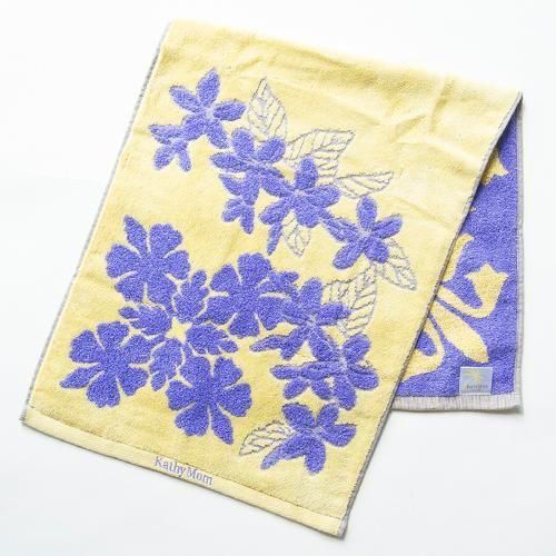 【Kathy Mom】フェイスタオル ハワイアンキルト柄 プルメリア パープル/イエロー