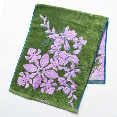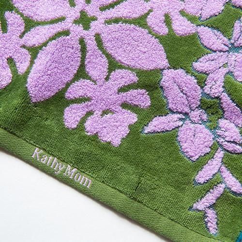 キャシーさんがこだわって作ったふんわり柔らかく肌触りの良いタオルは、両面パイルでデザインにもこだわりました。柄の部分にはふわふわの無撚糸パイル、背景にはさらっとした肌触りの撚糸パイルを使用して立体的なキルトデザインを表現しております。