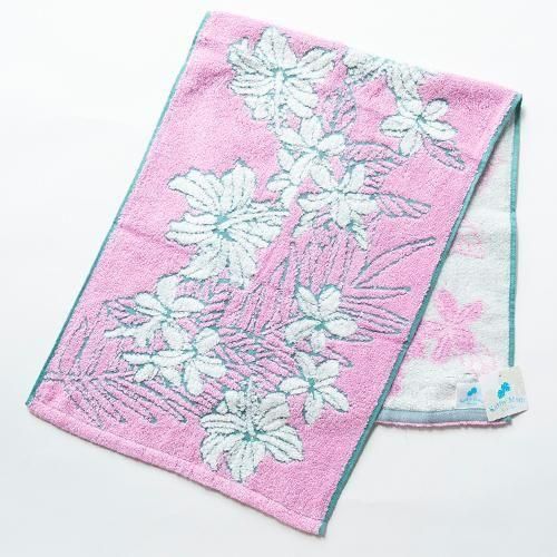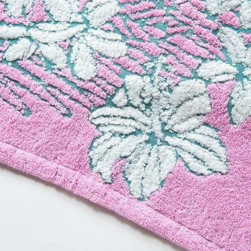 キャシーさんがこだわって作ったふんわり柔らかく肌触りの良いタオルは、両面パイルでデザインにもこだわりました。柄の部分にはふわふわの無撚糸パイル、背景にはさらっとした肌触りの撚糸パイルを使用して立体的なキルトデザインを表現しております。